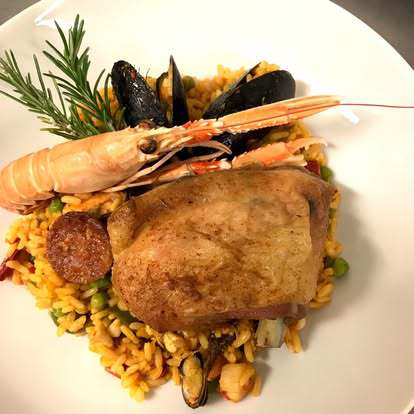 Riz safrané –Fruits de mer –Poulet-Chorizo –Langoustine